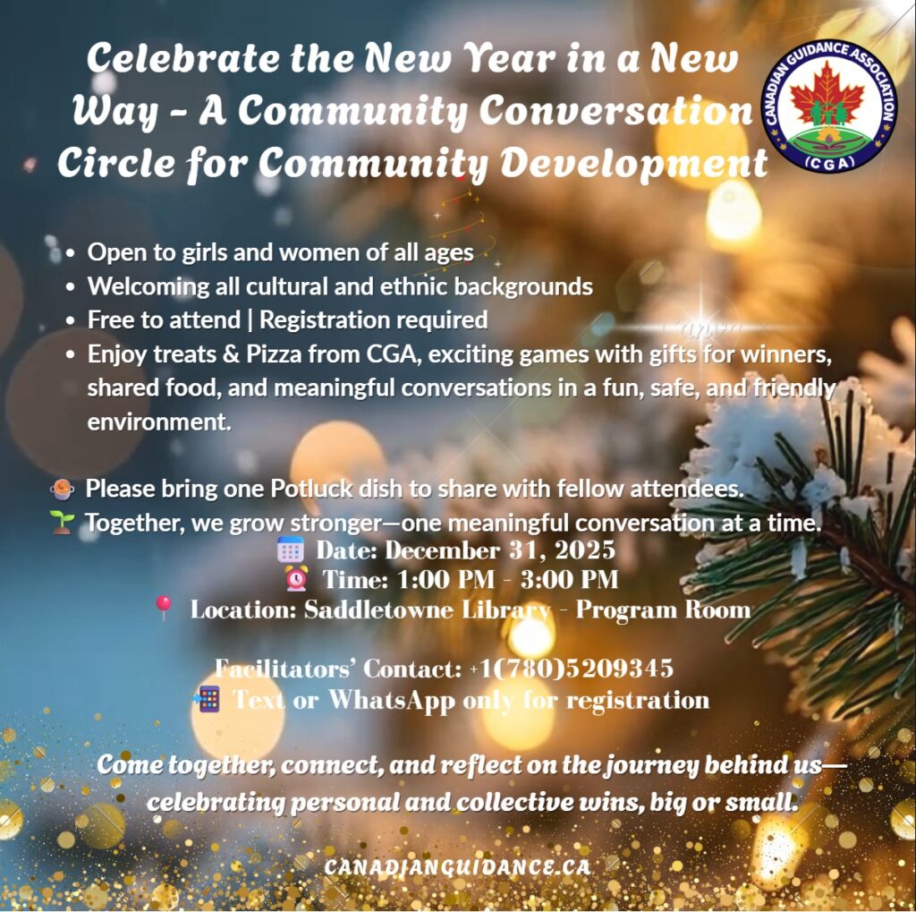 Welcome the New Year by connecting, reflecting, and growing together in a warm and inclusive community space. The Canadian Guidance Association (CGA) invites girls and women of all ages to join a meaningful Community Conversation Circle designed to celebrate personal and collective journeys while fostering connection and empowerment.